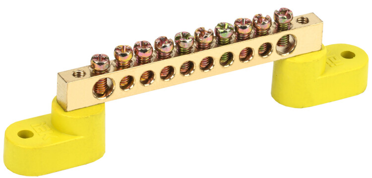 Шины с изолятором типа ШНИ предназначены для электрического и механического соединения нулевых, защитных и фазных проводников. Конструктивно шины ШНИ выполнены из латунной шины, установленной на пластиковый изолятор или в изолятор, изготовленный из самозатухающего пластика.