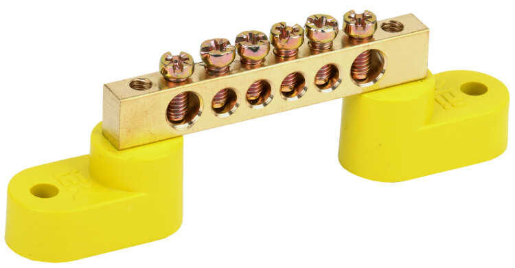 Шины с изолятором типа ШНИ предназначены для электрического и механического соединения нулевых, защитных и фазных проводников. Конструктивно шины ШНИ выполнены из латунной шины, установленной на пластиковый изолятор или в изолятор, изготовленный из самозатухающего пластика.