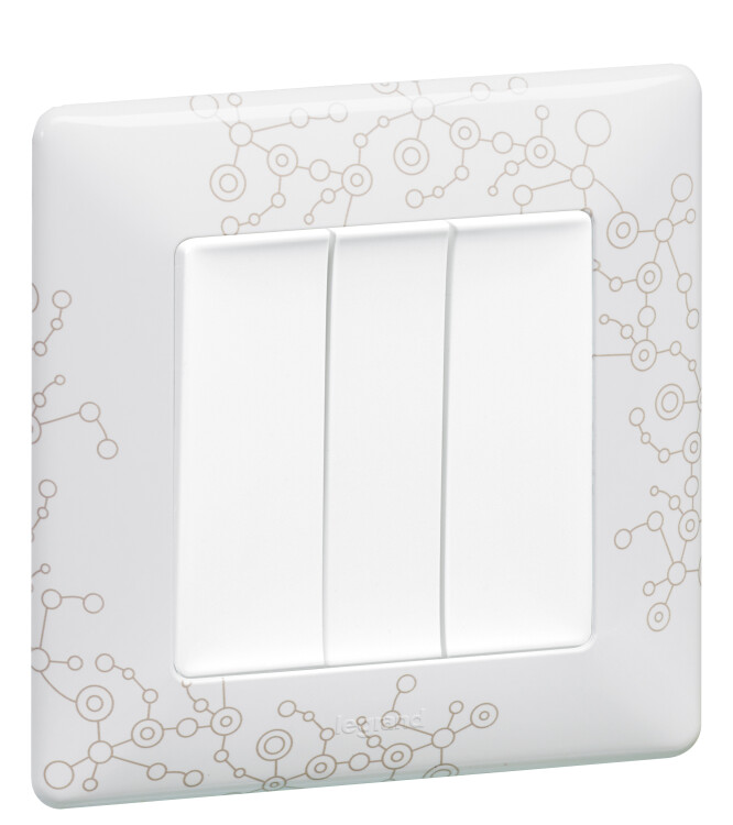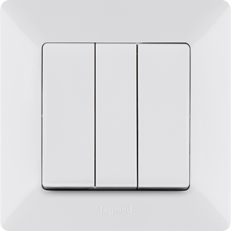Valena LIFE.Выключатель трехклавишный 10АХ 250В с лицевой панелью.Винтовые зажимы.Белый