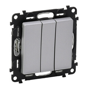 Valena LIFE.Выключатель трехклавишный 10АХ 250В с лицевой панелью.Винтовые зажимы.Алюминий