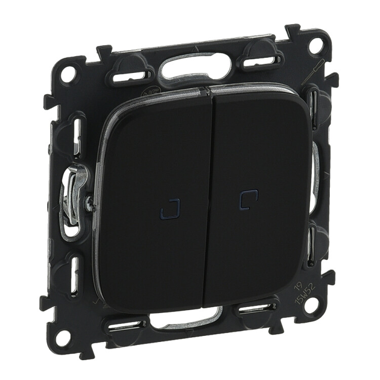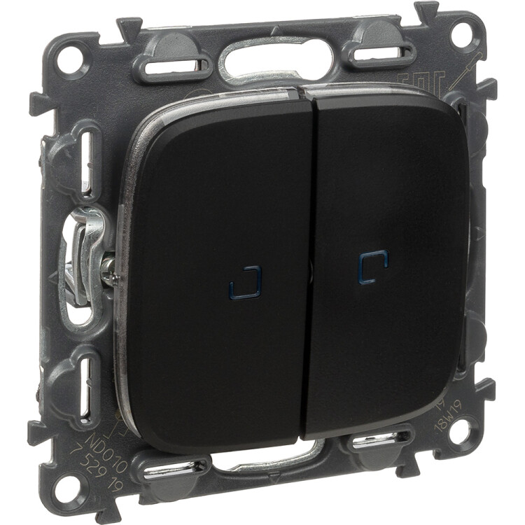 Valena ALLURE.Переключатель двухклавишный 10АХ 250В с подсветкой.С лицевой панелью.Антрацит