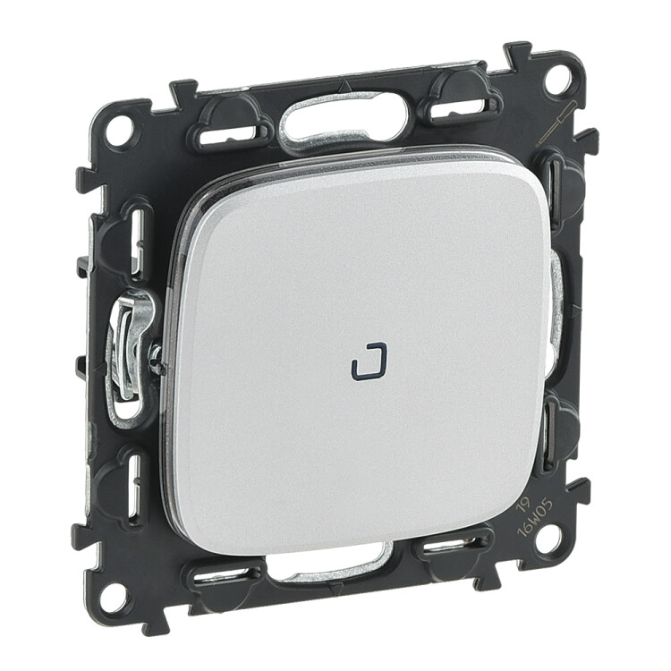 Valena ALLURE.Переключатель 10АХ 250В с подсветкой,с лицевой панелью.Безвинтовые зажимы.Алюминий