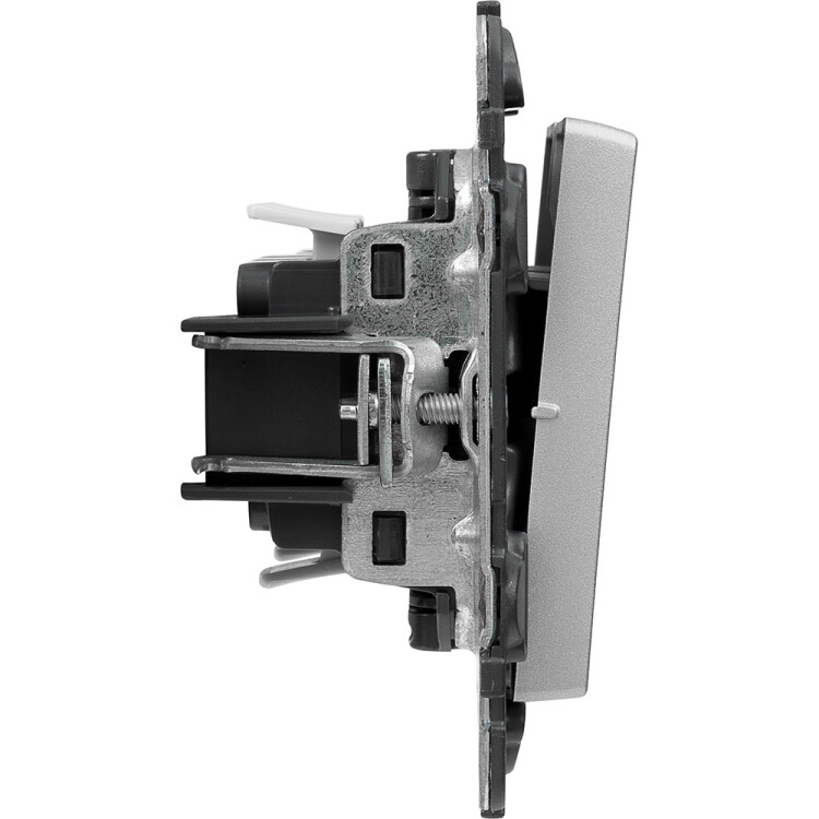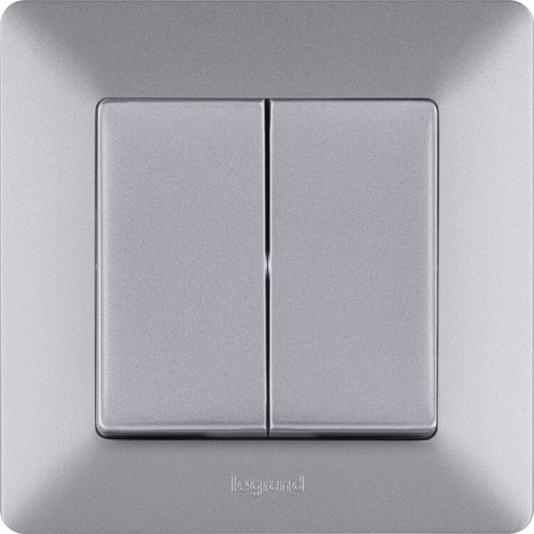Valena LIFE.Выключатель двухклавишный 10А 250В с лицевой панелью.Безвинтовые зажимы.Алюминий