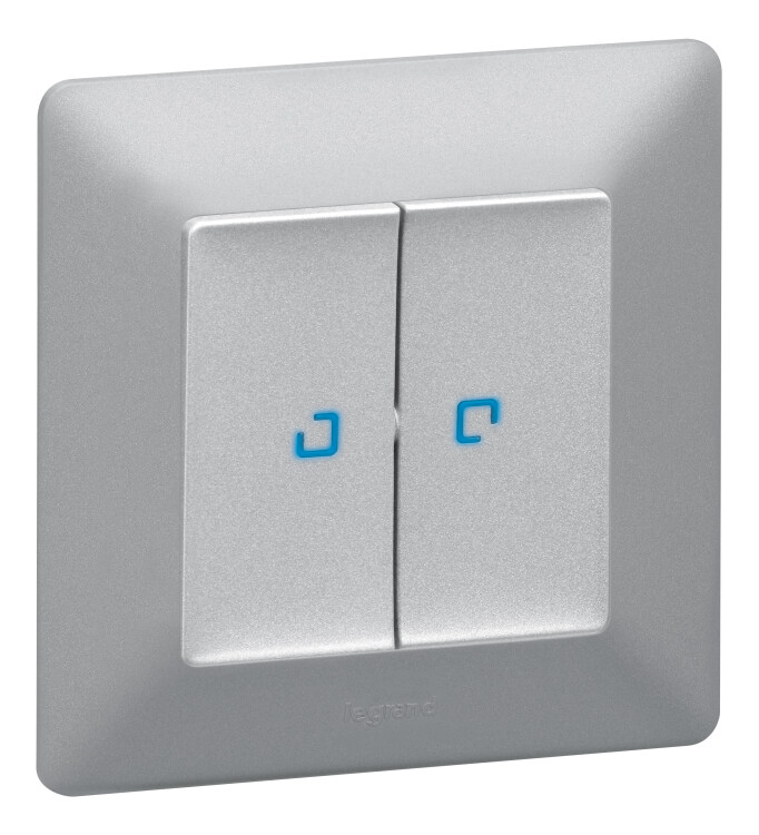 Valena LIFE.Выключатель двухклавишный 10АХ 250В с подсветкой.С лицевой панелью.Алюминий