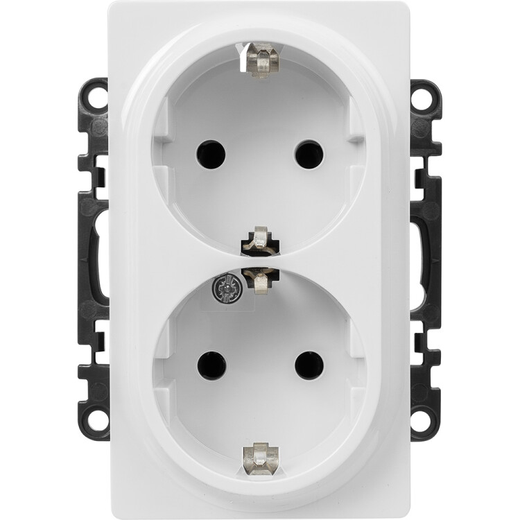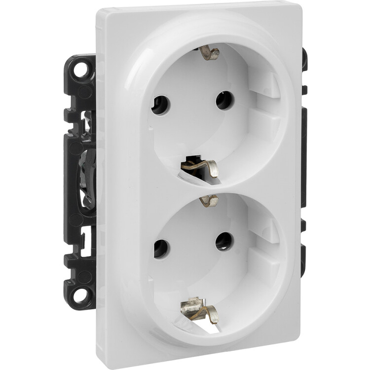 Valena LIFE.Силовая розетка двойная 2х2К+З 16А 250В с лицевой панелью.Безвинтовые зажимы.Белая