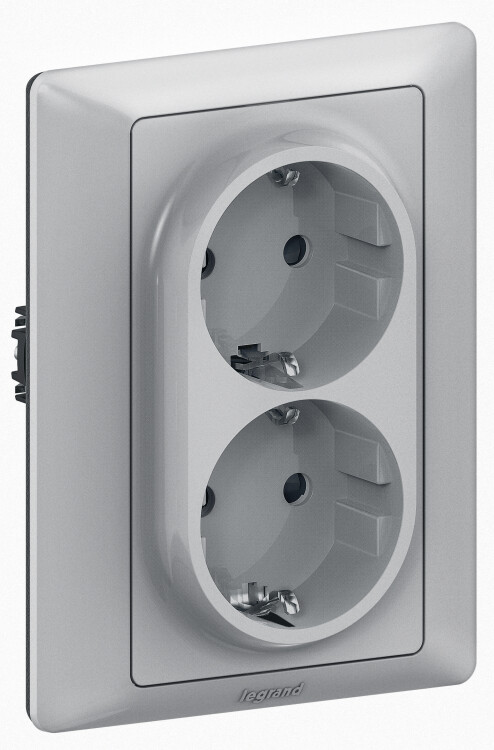 Valena LIFE.Силовая розетка двойная 2х2К+З 16А 250В с лицевой панелью.С защитными шторками.Безвинтовые зажимы.Алюминий