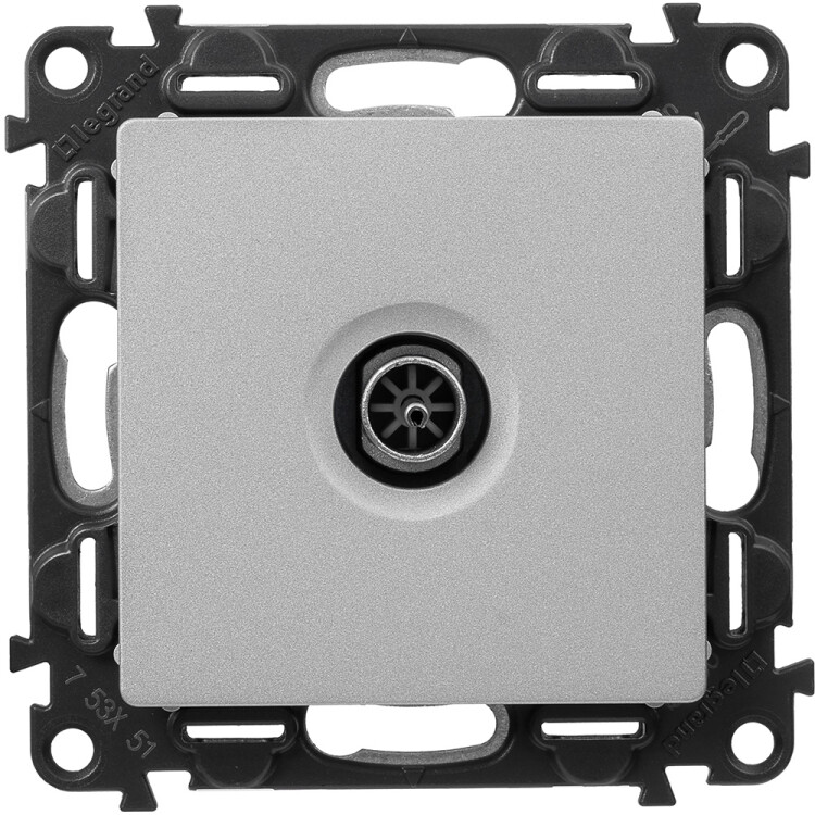 Valena LIFE.Розетка ТВ c топологией "звезда" 0-2400 МГц.С лицевой панелью.Алюминий