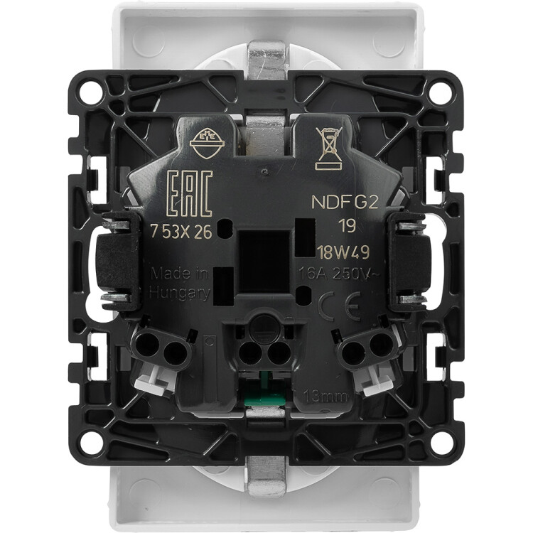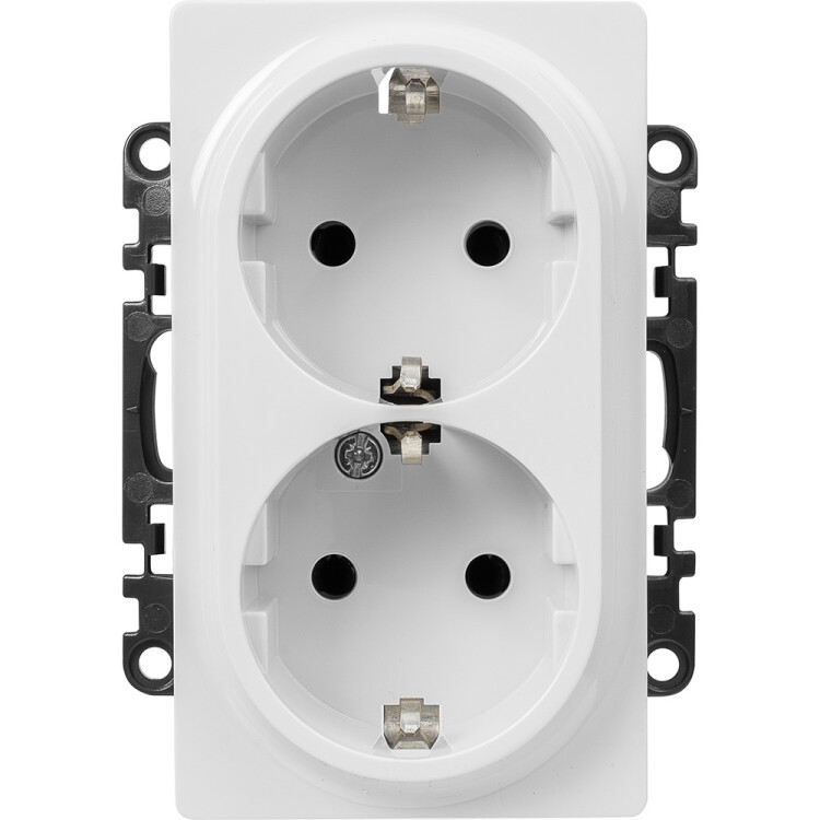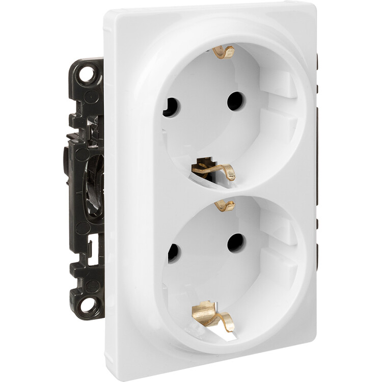 Valena LIFE.Силовая розетка двойная 2х2К+З 16А 250В с лицевой панелью.С защитными шторками.Безвинтовые зажимы.Белая