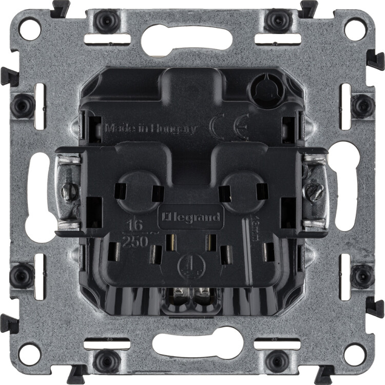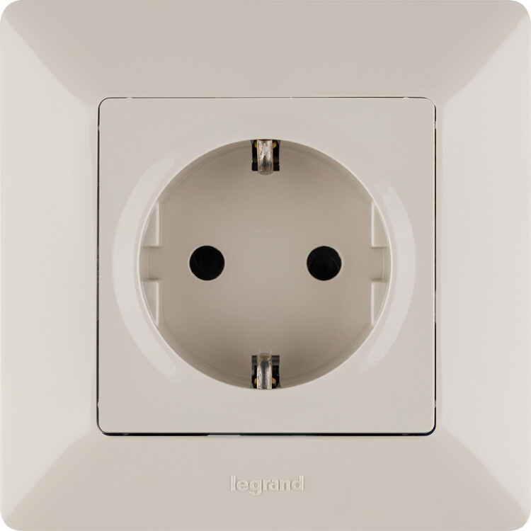 Valena LIFE.Силовая розетка 2К+З 16А 250В с защитными шторками.Безвинтовые зажимы.С лицевой панелью.Слоновая кость
