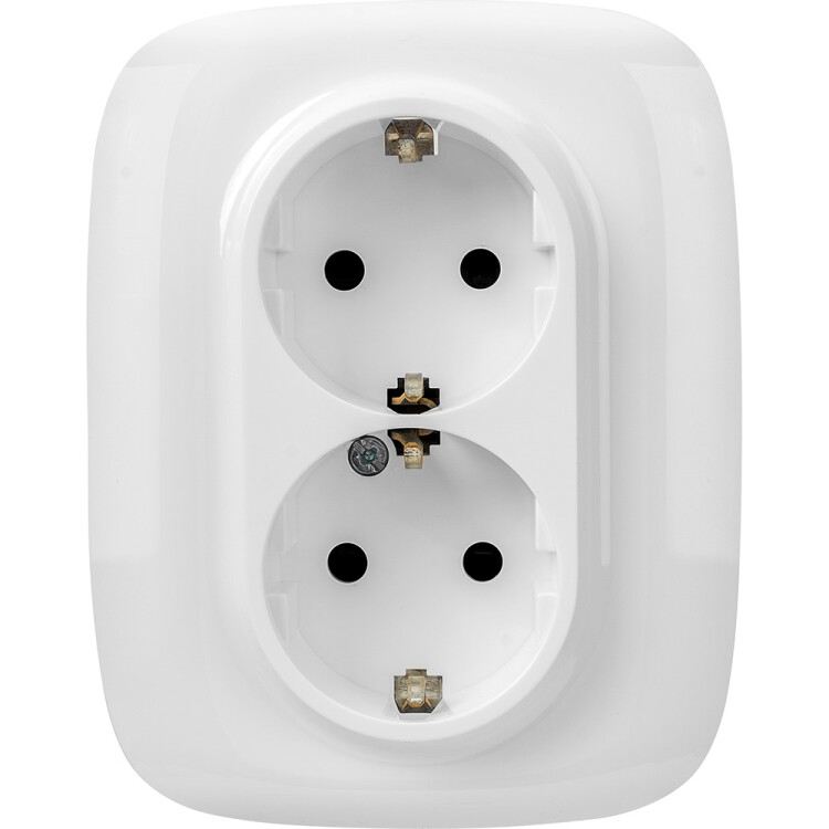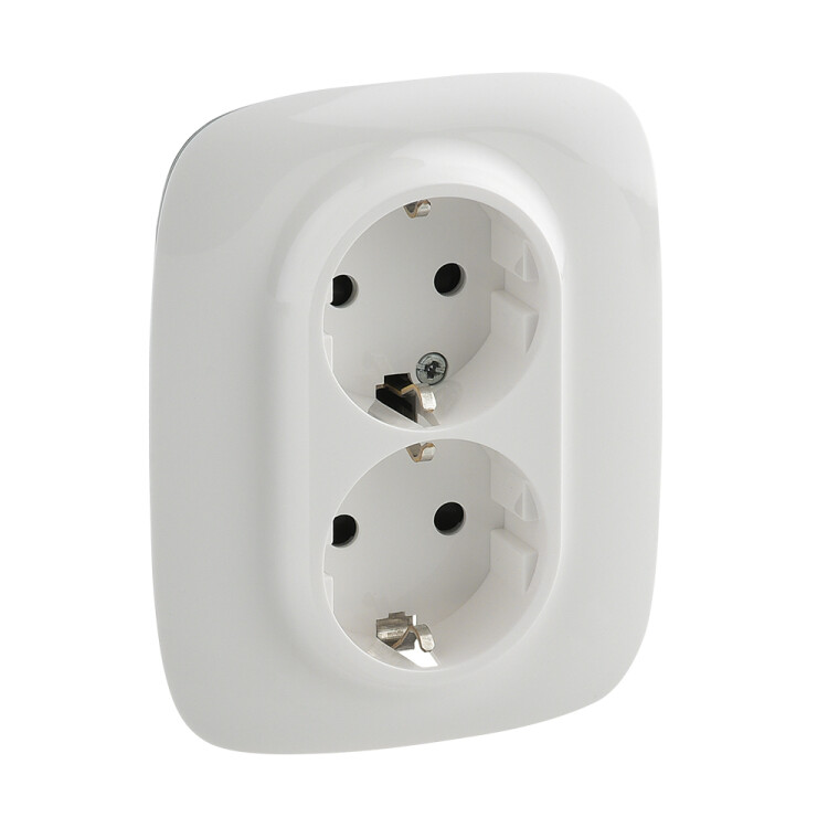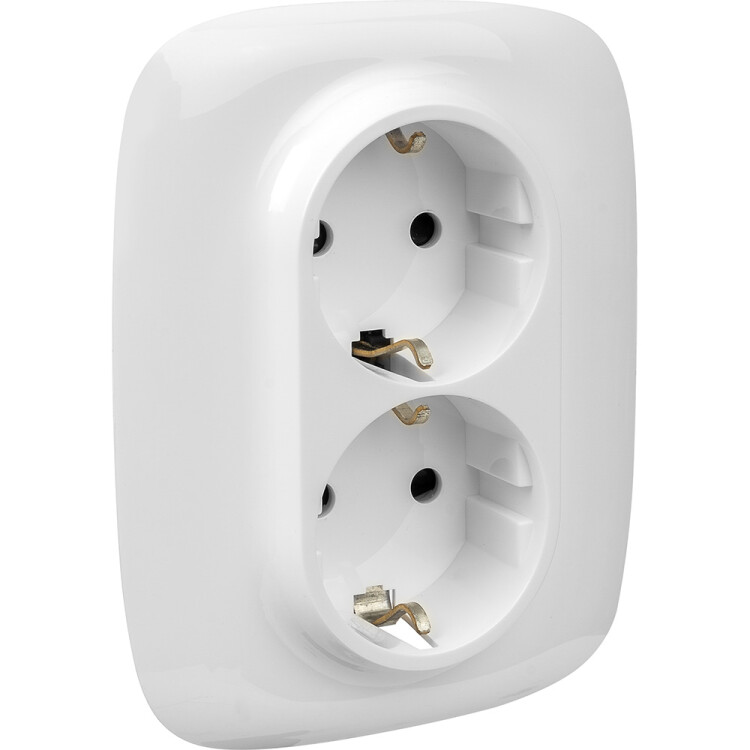 Valena ALLURE.Силовая розетка двойная 2х2К+З 16А 250В с лицевой панелью.С защитными шторками.Безвинтовые зажимы.Белая