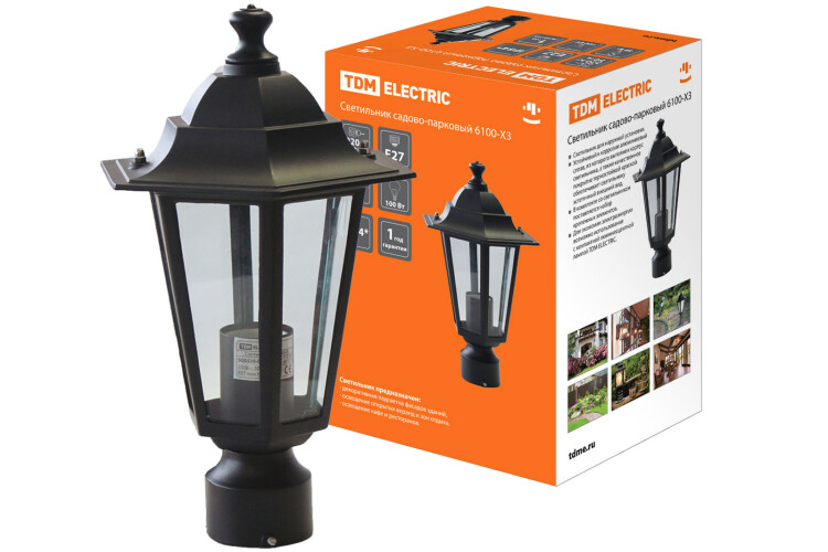 Светильник 6100-03 садово-парковый шестигранник, 100Вт, на опору, черный TDM (кр.1шт)
