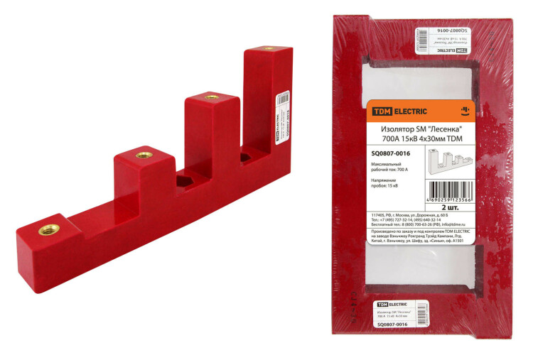 Применение:Изоляторы шинные Лесенка используются при сборке НКУ различного назначения. Материалы:В тело изоляторов армированы латунные гайки для крепления к металлоконструкциям корпуса и к шине.Корпус изоляторов выполнен из диэлектрического пластика, армированного стекловолокном (BMC Bulk Mould Composite).Преимущества:Возможность крепления шин большой длины с одинаковым межфазным расстоянием без дополнительного выравнивания.Материал корпуса изолятора не подвержен старению, обладает удельной прочностью, сравнимой со сталью, не горюч и ударопрочен. Назначение:Для крепления токоведущих шин внутри силовых шкафов или сборок а также для неподвижной фиксации и изоляции частей,находящихся под напряжением, от корпуса и панелей сборки. Упаковка:Изолятор SM Лесенка 300А 6кВ 4х20мм по 2 шт.Изолятор SM Лесенка 450А 9кВ 4х30мм по 2 шт.Изолятор SM Лесенка 600А 12кВ 4х40мм по 2 шт.Изолятор SM Лесенка 700А 15кВ 4х30мм по 2 шт.Изолятор SM Лесенка 900А 18кВ 4х40мм по 2 шт.