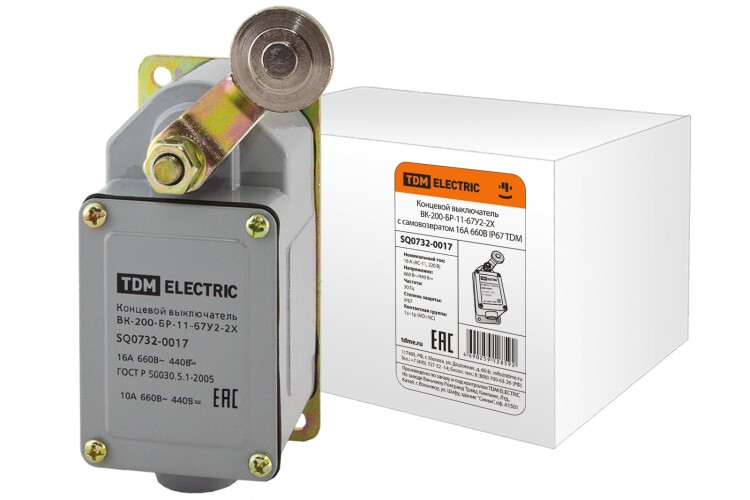 Применение:Промышленные предприятия.Cтроительно-монтажные организации Материалы:Контактная группа выполнена из электротехнической меди с гальваническим покрытием.Корпус выполнен из силумина (сплава кремния и алюминия) - материала, обладающего высокой устойчивостью к коррозии во влажной атмосфере, большой прочностью и износоустойчивостью.Преимущества:Простая ручная установка направления рабочего ходаВысокая коммутационная и механическая износоустойчивостьВысокая степень защиты от воздействия влаги и пыли Назначение:Выключатели концевые серии ВК предназначены для применения в электрических цепях управления, сигнализации и контроля относительного положения подвижных частей механизма в пространстве. 0: