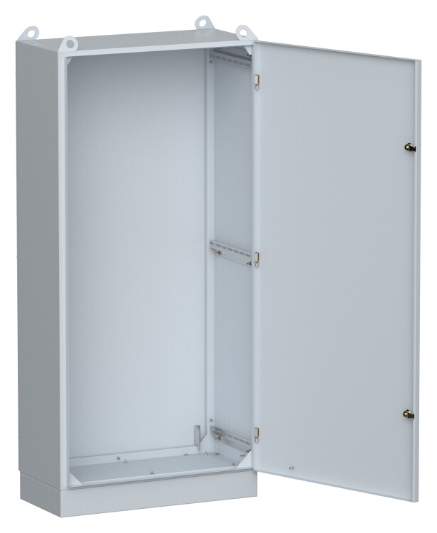 Сварной металлический корпус с цоколем и съемной монтажной панелью для установки внутри помещений (монтажная панель заказывается отдельно).