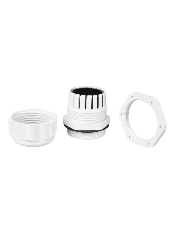 Корпус, гайка уплотнения и фиксирующая гайка выполнены из нейлона. Установка сальника производится при помощи трубного (газового) ключа.