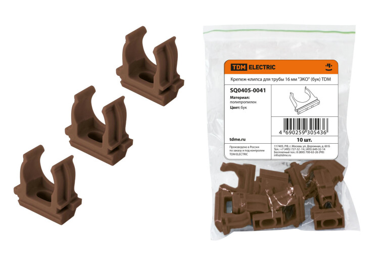 Крепеж-клипса для трубы 16 мм (10шт) "ЭКО" (бук) TDM (кр.10шт)