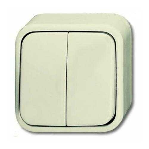 Выключатель 2-клавишный, для открытого монтажа, IP44, серия Busch-Duro 2000 AP, цвет слоновая кость (кр. 1шт)