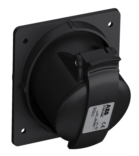 Розетка панельная серии Easy&Safe с минимальным угловым фланцем, IP44. Специальное исполнение в корпусе черного цвета для индустрии развлечений. Корпус из термопласта (PA). Сечение жилы кабеля: 1,5-4 мм2