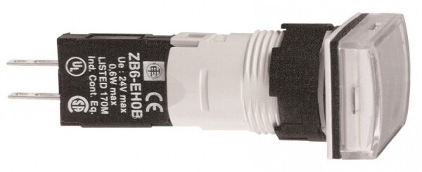 сигнальная лампа 16мм 12-24В белая с диодом. серия продукта: Harmony XB6 - тип устройства или его аксессуаров: сигнальная лампа в сборе - краткое название устройства: XB6 - монтажный диаметр: 16 мм. Преимущества: Элементы конструкции визуально различимы с большого расстояния благодаря яркому цвету и маркировке, поэтому ошибки при первоначальном подключении и последующих операциях обслуживания сводятся к минимуму. Корпус со степенью защиты IP66 защищает данное устройство от ударных нагрузок, а также от пыли, воды и вибрации, поэтому оно идеально подходит для работы в неблагоприятных условиях окружающей среды.Применения: в средах, где необходима хорошая устойчивость к химическим веществам и/или двойная электрическая изоляция.