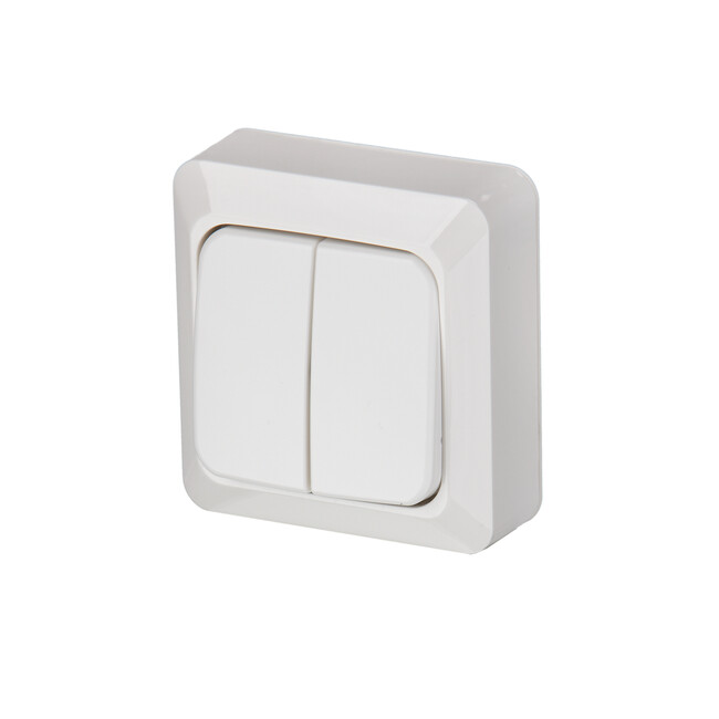 Выключатель 2-клавишный, 1-полюсный, 16А/230В (схема 5), серия Jussi, белый, поверхностный монтаж (кр. 1шт)