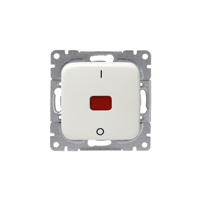 Выключатель 1-клавишный, 2-полюсный, с лампой контрольной подсветки, 10А/250В, серия Jussi, белый (кр. 10шт)