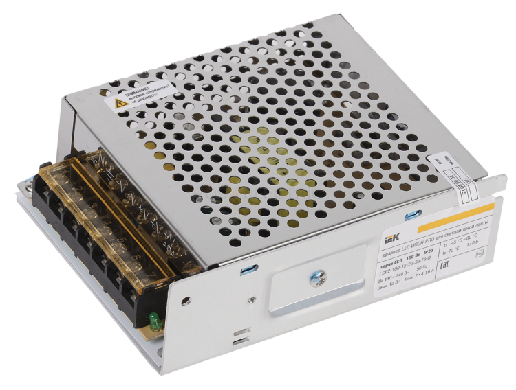 Драйверы преобразуют параметры входящего сетевого напряжения 220 В 50/60 Гц в постоянное напряжение 12 В необходимое для питания светодиодной ленты.