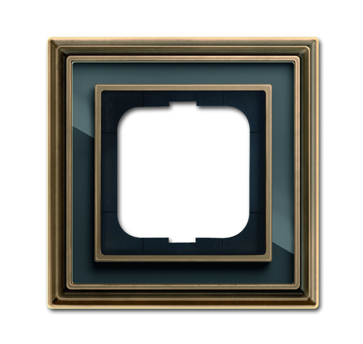 Рамка 1-постовая, серия Династия, Латунь античная, черное стекло (кр. 1шт)