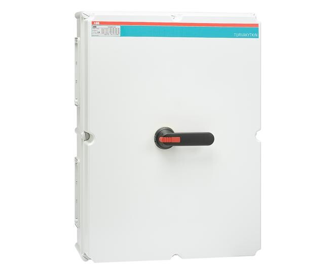 Корпус выключателя с фронтальным управлением изготовлен из жесткого поликарбоната. Корпус защищен от ультрафиолетового излучения и защищен от водяных струй низкого давления и мелких частиц пыли (IP65). Предназначен для наружного и внутреннего применения. Сверху и снизу предусмотрены отверстия для заведения кабелей. Изначально отверстия закрыты выбиваемыми заглушками и имеют заводскую резьбу для установки сальников. Рукоятка блокируется в отключенном положении с помощью навесного замка (максимум до трех навесных замков). Крышка заблокирована. Блокировка может быть подавлена для термографирования. Выключатель выполнен для 5-проводной системы и имеет фиксированную клемму нейтрали и клемму PE. В комплект входят два мембранных сальника и два ограничителя протяжки кабеля.