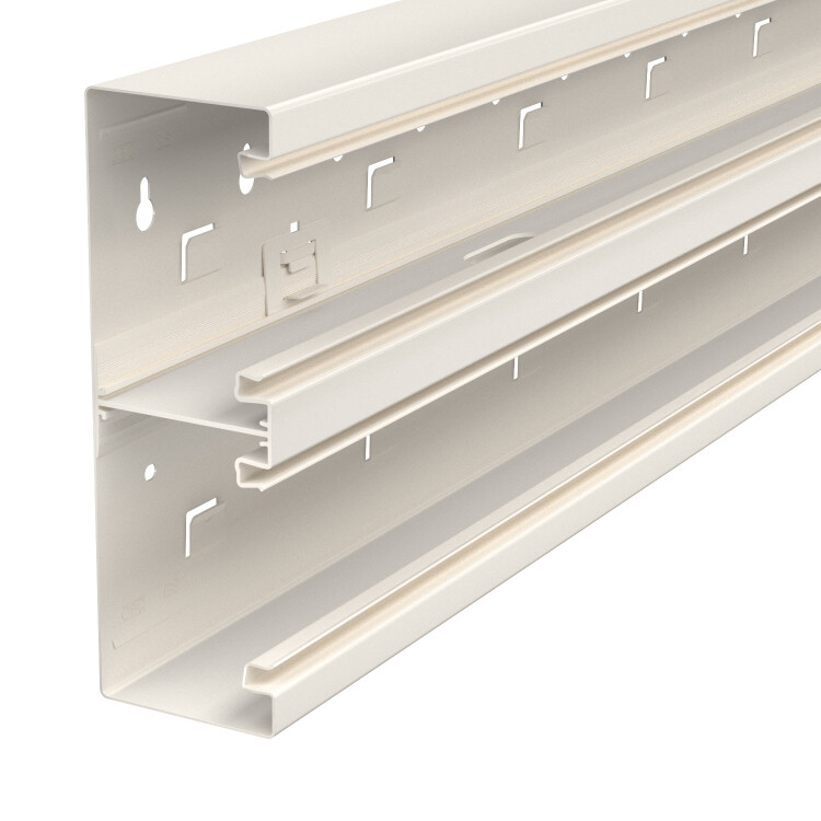 Короб для монтажа электроустановочных изделий GS подходит для крепления к стене или консоли. Короб для монтажа электроустановочных изделий GS имеет в своем распоряжении фиксирующую накладку для установки разделительной перегородки из листовой стали. Уравнивание потенциалов нижних частей осуществляется с помощью муфты. Заземление и уравнивание потенциалов между верхней и нижней частью обеспечивается за счет запатентованной самоконтактирующей крышки короба. Высота системного отверстия составляет 76,5 мм.