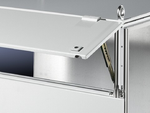 Фиксатор для панели, сверху на шарнирах, описание: 5 положений растра до максимального угла открытия ок. 85°, листовая сталь, оцинкованная