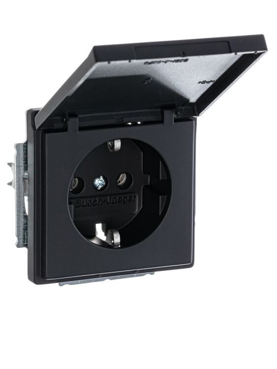 Розетка SCHUKO 16А 250В с крышкой, серия solo/future, цвет чёрный бархат (кр. 1шт)