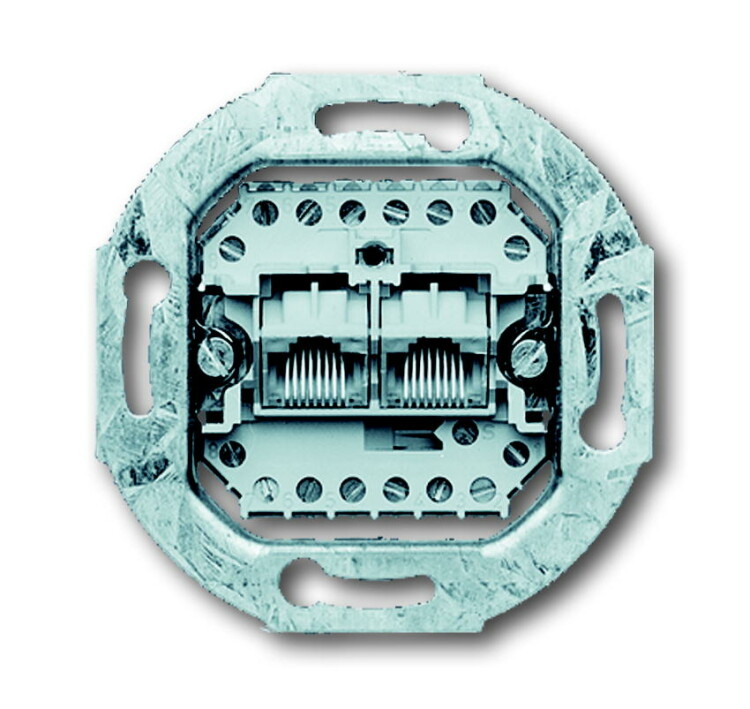 Механизм 2-постовой телефонной розетки 8/8 полюсов, раздельно, RJ 11/12; RJ 45; ISDN, категория 3 (кр. 1шт)
