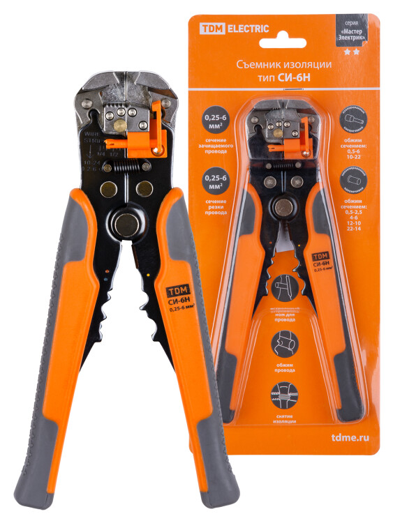 Съемник изоляции СИ-6Н, сечения: зачистки 0,25-6 мм, обжима 0,5-6 мм "МастерЭлектрик" TDM (кр.1шт)