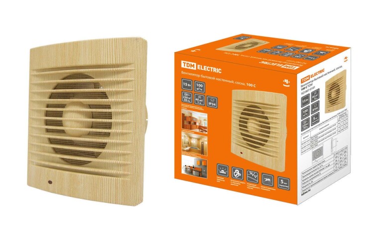 Вентилятор бытовой настенный, 100 С "ЭКО" (сосна) TDM (кр.1шт)