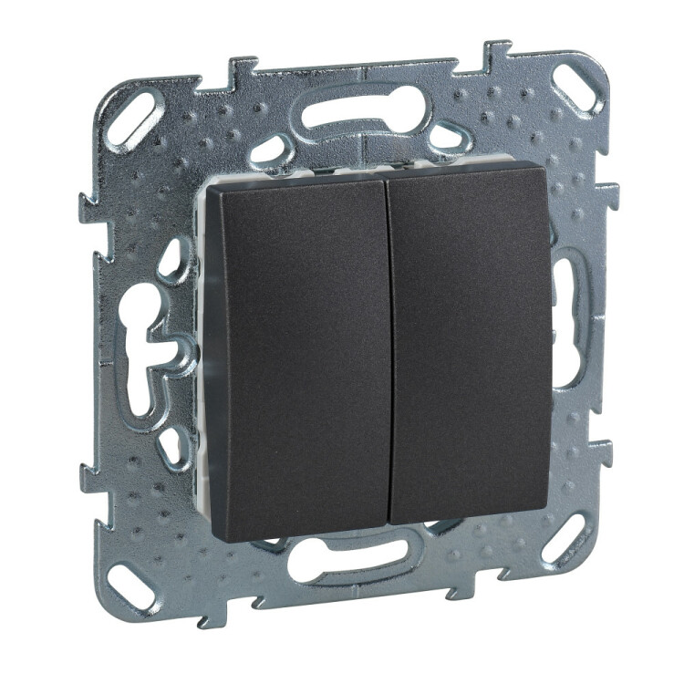 Выключатель двухклавишный Schneider Electric UNICA ТОР (графит) без подсветки предназначен для сетей до 250 В на ток до 10 А.