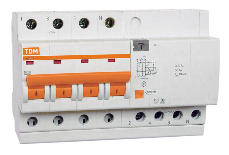 Применение:Жилищно-коммунальное хозяйство и офисы.Промышленные здания.Строительные объекты.Электрифицированные рекламные конструкции. Материалы:Корпус и детали аппарата выполнены из пластика, не поддерживающего горение.Преимущества:Защелка на DIN-рейку с фиксацией упрощает монтаж и демонтаж аппарата.Наличие двойного одновременного подключения. Шина и проводник значительно расширяет диапазон возможных схемных решений.Цена гораздо ниже, чем при покупке УЗО и автоматического выключателя за счет совмещения функций в одном изделии.Клеммные зажимы автомата промаркированы, что позволяет избежать ошибок при монтаже.которая в случае срабатывания аппарата по дифференциальному току выходит из корпуса и препятствует повторному включению аппарата без возврата ее в корпус. Назначение:Проведение тока в нормальном режиме.Отключение тока при коротких замыканиях или перегрузке.Отключение тока при прикосновении человека к токоведущим частям электроустановок или протекании дифференциального (утечки) тока на землю. Упаковка:АД12 2Р по 3 шт.АД14 4Р по 2 шт.Руководство по эксплуатации - 1 шт. на групповую упаковку Паспорт - 1 шт. на групповую упаковку