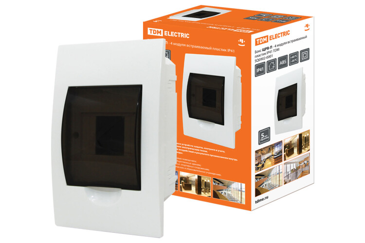 Бокс ЩРВ-П-4модуля встраиваемый пластик IP41 TDM (кр.1шт)