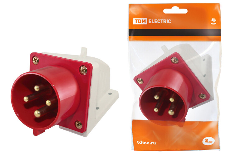 Вилка 514 стационарная 3Р+РЕ 16А 380В IP44 TDM (кр.10шт)