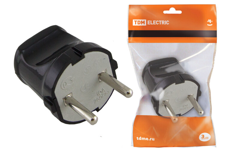 Вилка б/з черная 6А 250В TDM (кр.50шт)