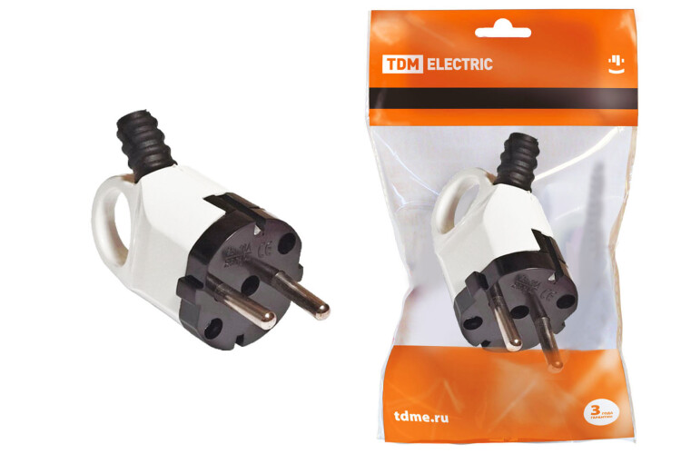 Вилка угловая с ушком с/з белая 16А 250В TDM (кр.35шт)