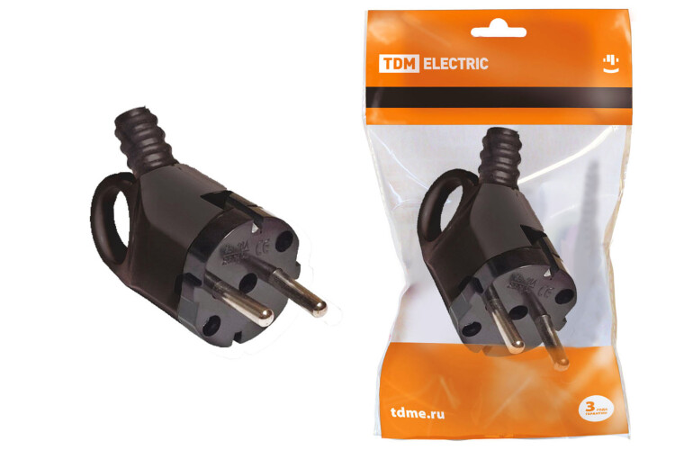 Вилка угловая с ушком с/з черная 16А 250В TDM (кр.35шт)