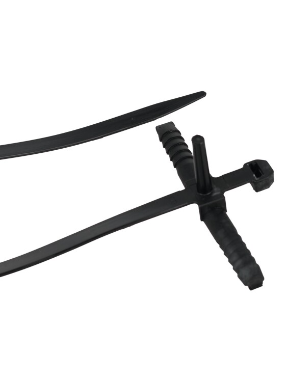 Хомут дюбельный предназанчен для быстрой и удобной прокладки проводки вдоль стен. Изделие обеспечивает легкость и быстроту монтажа, позволяя избавиться в процессе прокладки кабеля от классических дюбелей и шурупов.