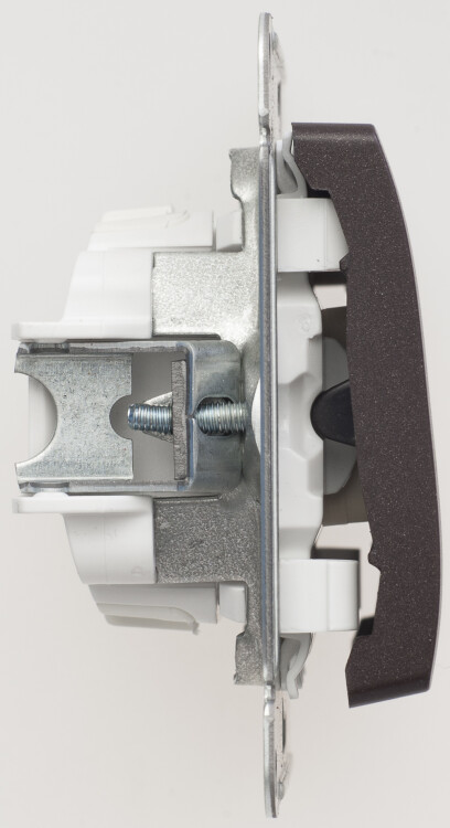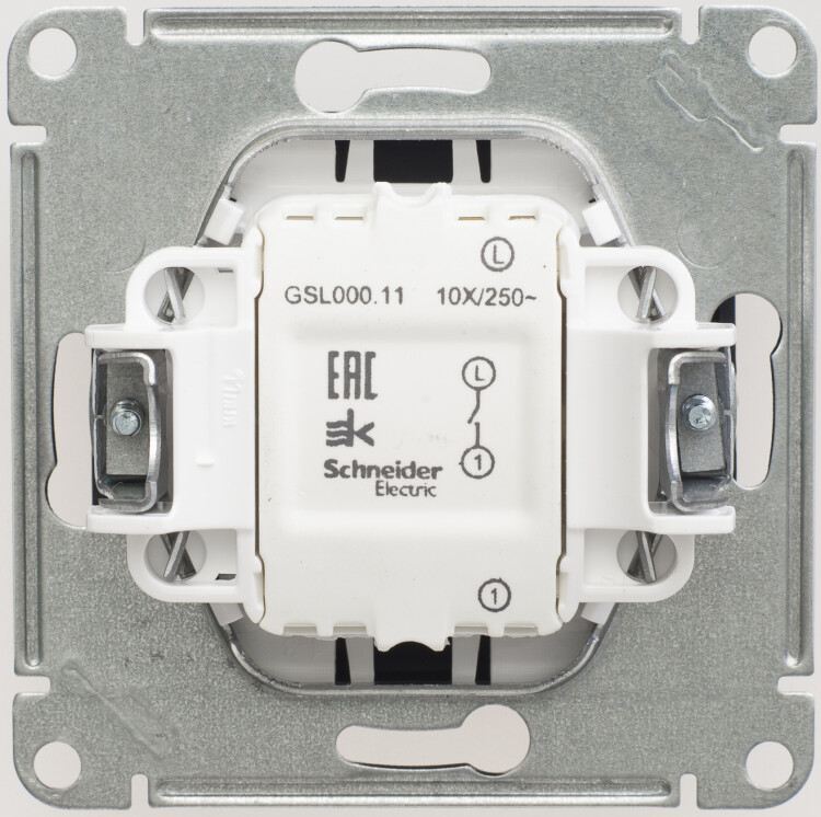Механизм Systeme Electric (ранее Schneider Electric) серии Glossa (цвет шоколад) выключателя 1-клавишного подходит для сетей 250 В, на ток 10 А. Выполнен из материала PС+ASA, стойкого к УФ-излучению и появлению царапин. Эргономичные клеммы расположены в два ряда: сверху и снизу.