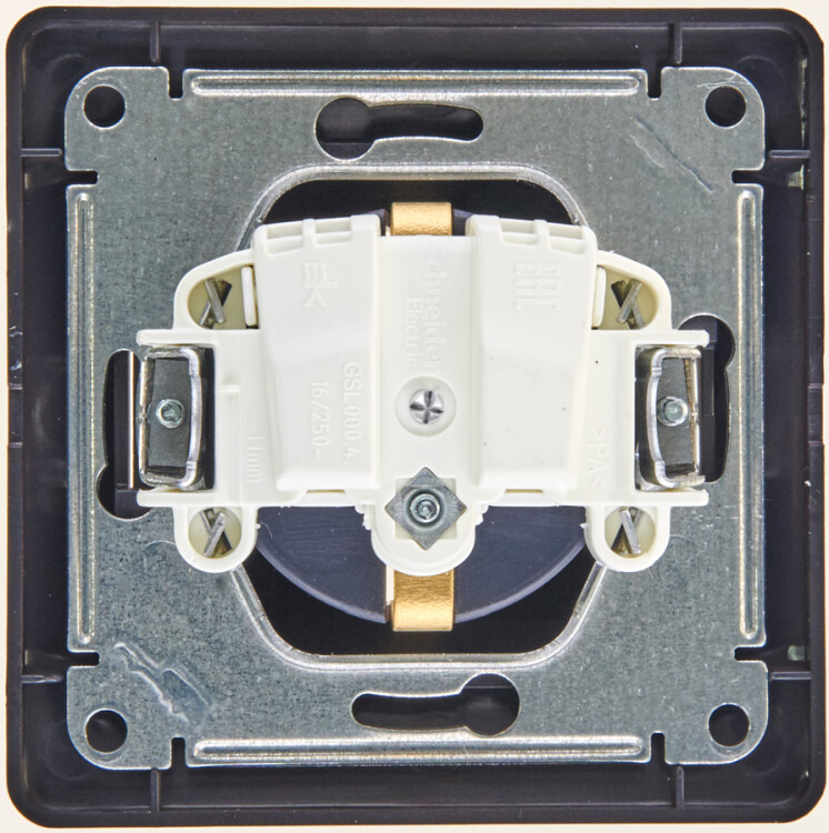 Розетка Systeme Electric (ранее Schneider Electric) серии Glossa (в сборе, цвет шоколад) одинарная с заземлением и без шторок подходит для сетей 250 В, на ток 16 А. - Выполнен из материала PС+ASA, стойкого к УФ-излучению и появлению царапин. - Эргономичные клеммы розеток расположены в один ряд.