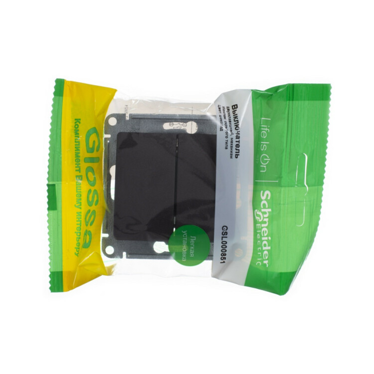 Механизм Systeme Electric (ранее Schneider Electric) серии Glossa (цвет шоколад) выключателя 2-клавишного подходит для сетей 250 В, на ток 10 А.