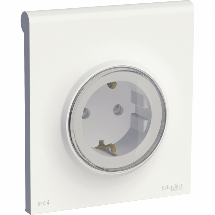 Розетка Schneider Electric ODACE (цвет белый) с заземлением, со шторками, с крышкой предназначена для сетей до 250 В на ток до 16 А.