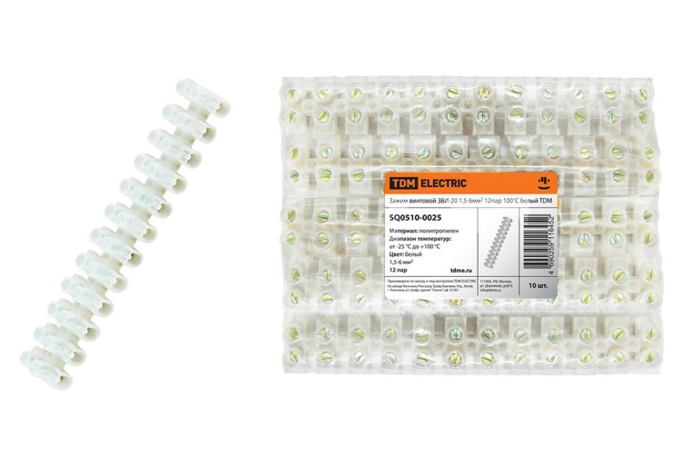 Зажим винтовой ЗВИ-20 полипропилен 1,5-6мм2 12пар 100°С белый TDM (кр.10шт)