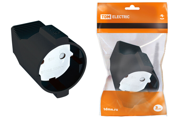 Кабельная розетка 2П б/з с з/ш 10А 250B черная TDM (кр.20шт)