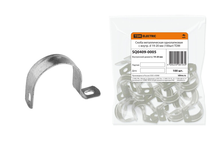 Скоба металлическая однолапковая с внутр. d 19-20 мм (100шт) TDM (кр.100шт)