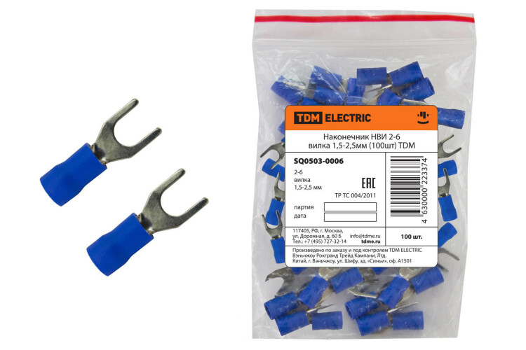 Наконечник НВИ 2-6 вилка 1,5-2,5мм (100шт) TDM (кр.1упак)